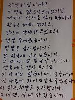 アボジへの感謝の手紙。日本語とハングルで。辞書なしじゃここまでかけない・・・