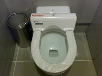 空港のトイレ。便座のビニールがボタンを押すと回転する。